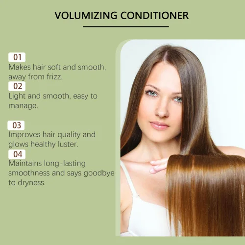 Our volumizing conditioner contains cetroxonium chloride and polydimethylsiloxane. It soothes the scalp and keeps it fresh to keep hair soft and smooth and away from blistering. The way to use it is simple: clean your hair and wipe it until it is half dry. Apply appropriate amount of this product evenly to the end of hair. Massage gently for 2-3 minutes, then wash off with water. And it can improve the hair root environment and provide the basis for healthy hair growth.